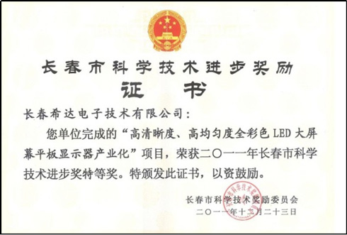 公司被認定為省級企業技術中心,“希達牌LED顯示屏”被授予吉林省名牌產品。